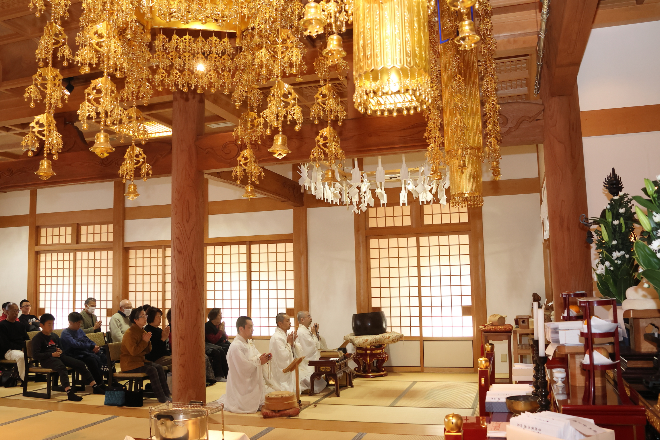 午前の星祭は三座に分けて自我偈50巻を読誦し、お申込みいただいた皆様の”善星皆来(ぜんせいかいらい)”と”悪星退散(あくせいたいさん)”を祈りました。